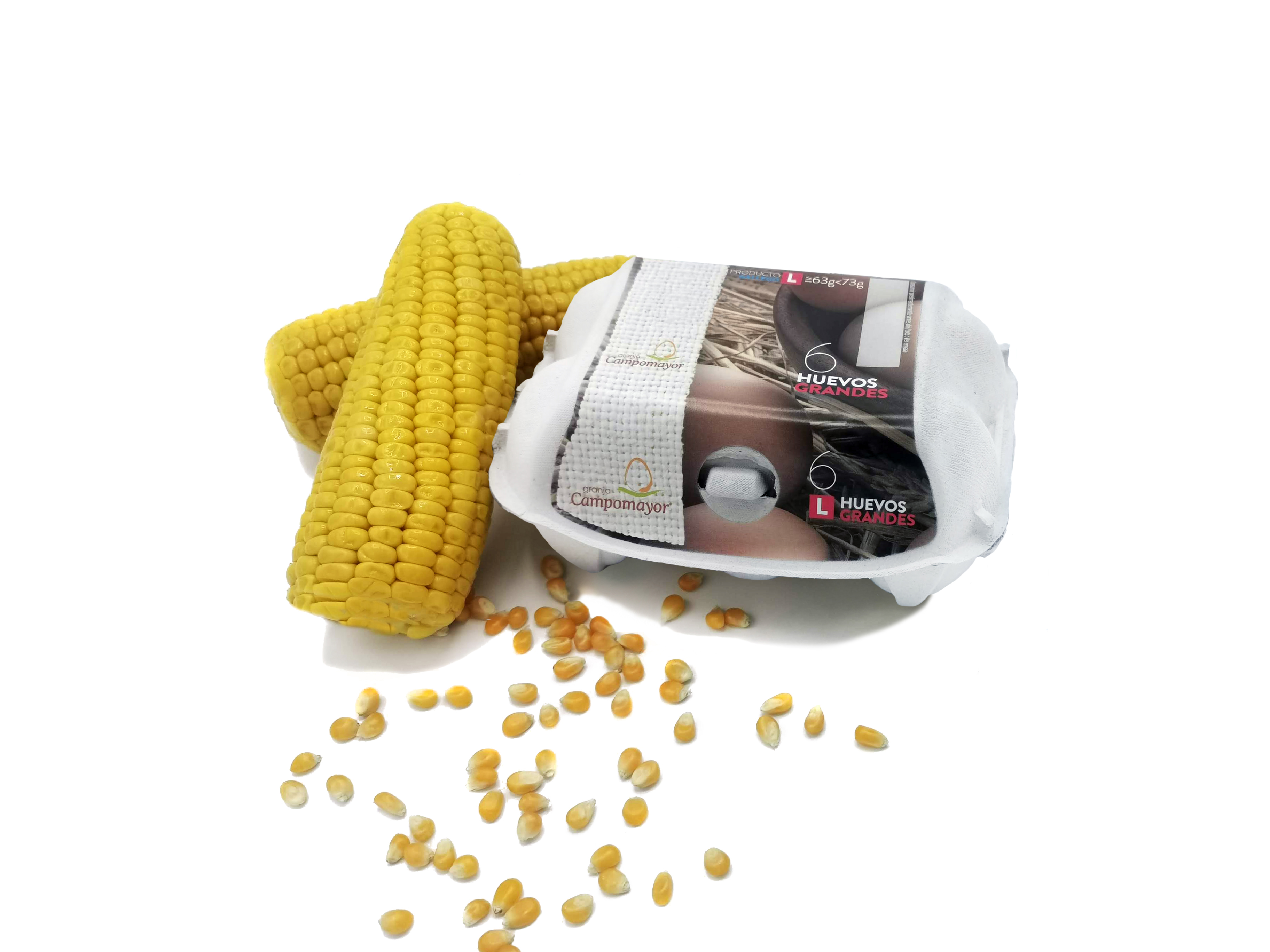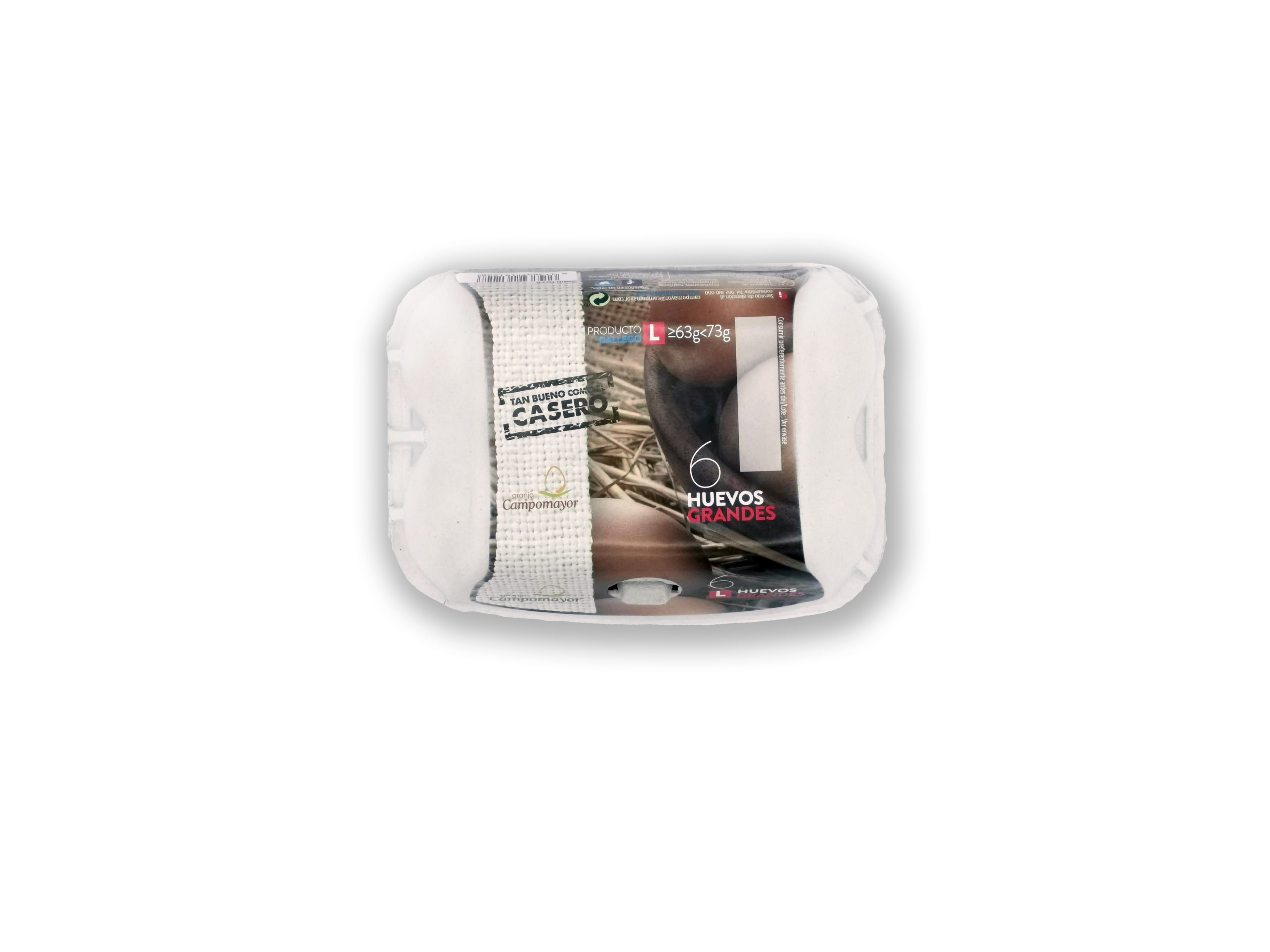 Los huevos de clase L de Campomayor son los que pone la gallina adulta. Su peso unitario se encuentra entre los 63 y los 73 gramos.