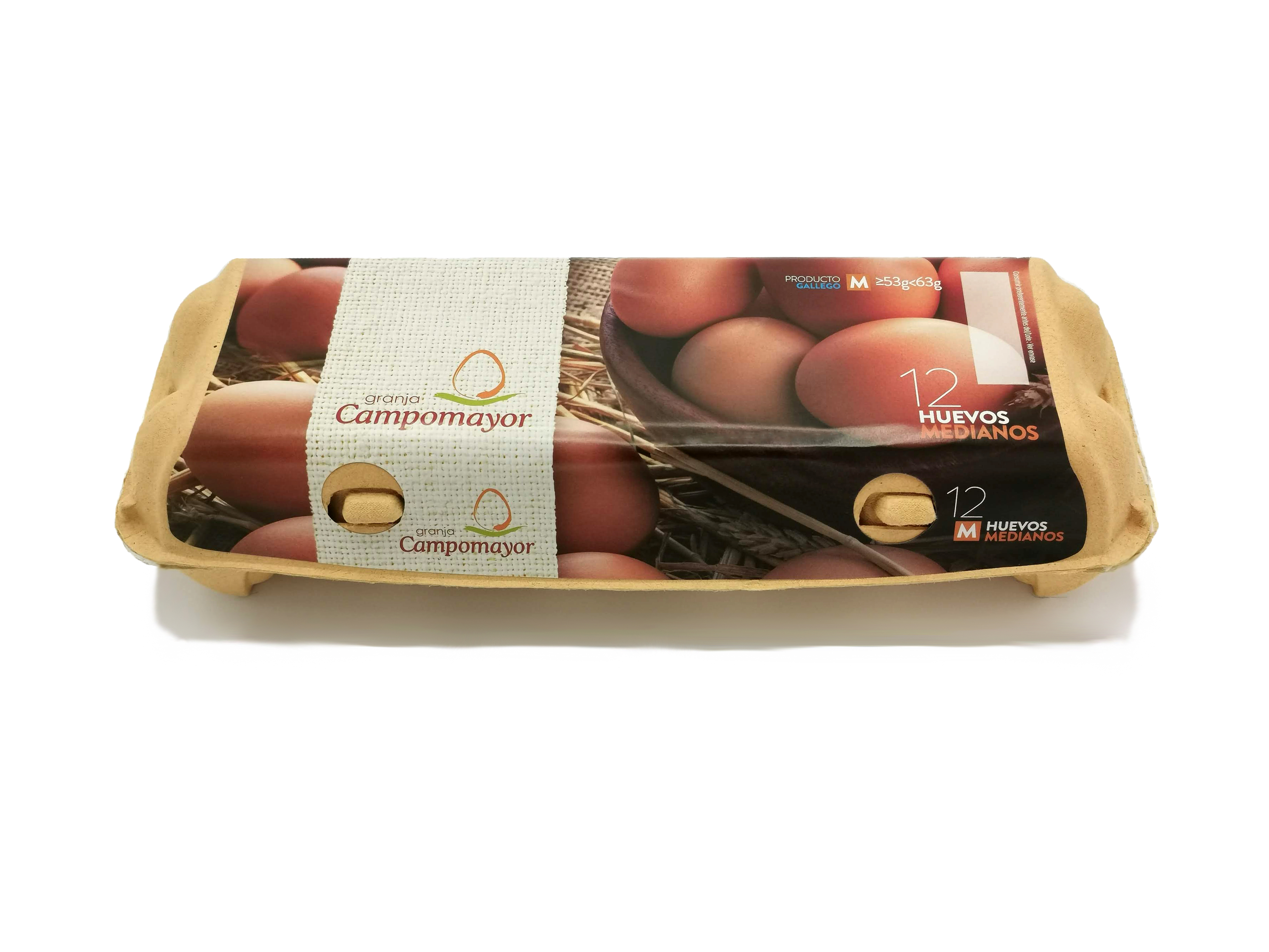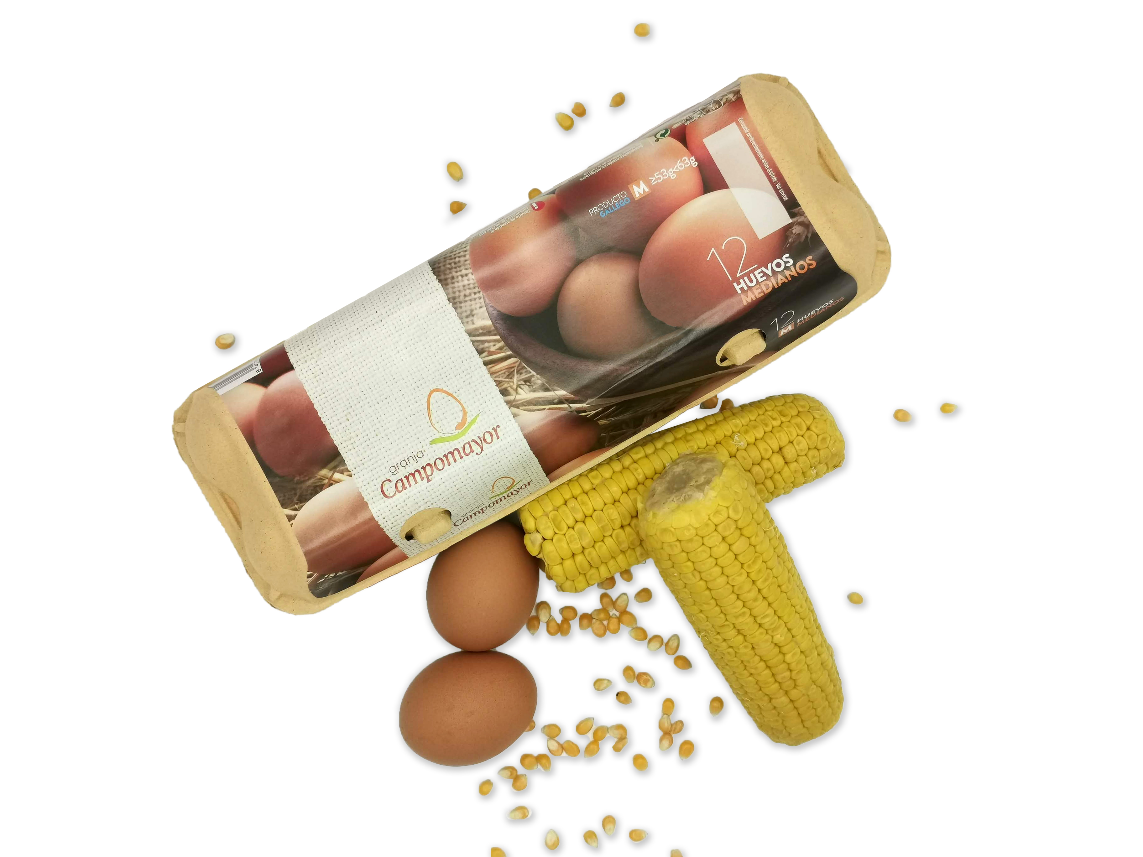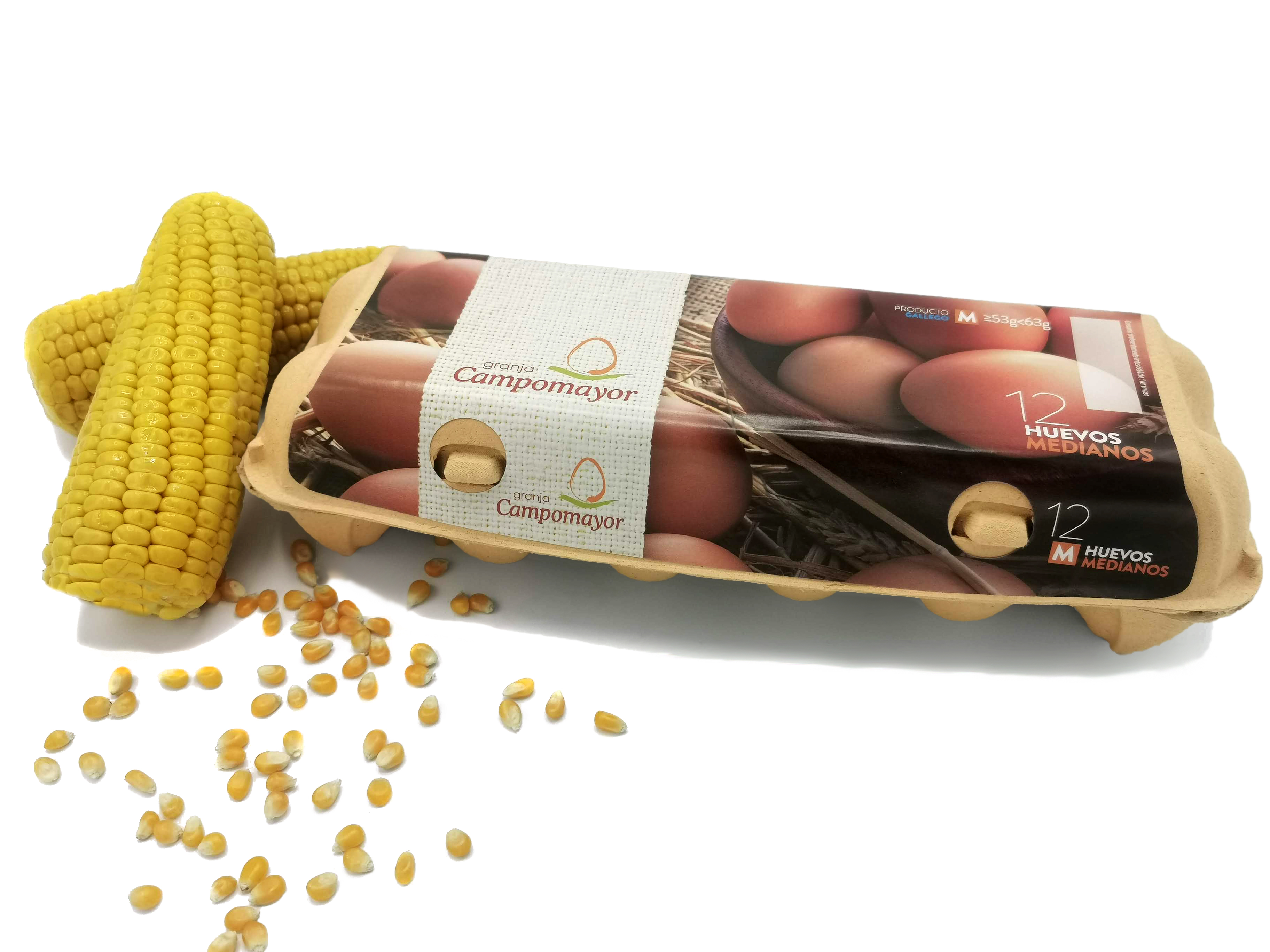Los huevos de clase M de Campomayor son los que corresponden al ciclo medio de vida de la gallina. Su peso unitario se encuentra entre los 53 y los 63 gramos.