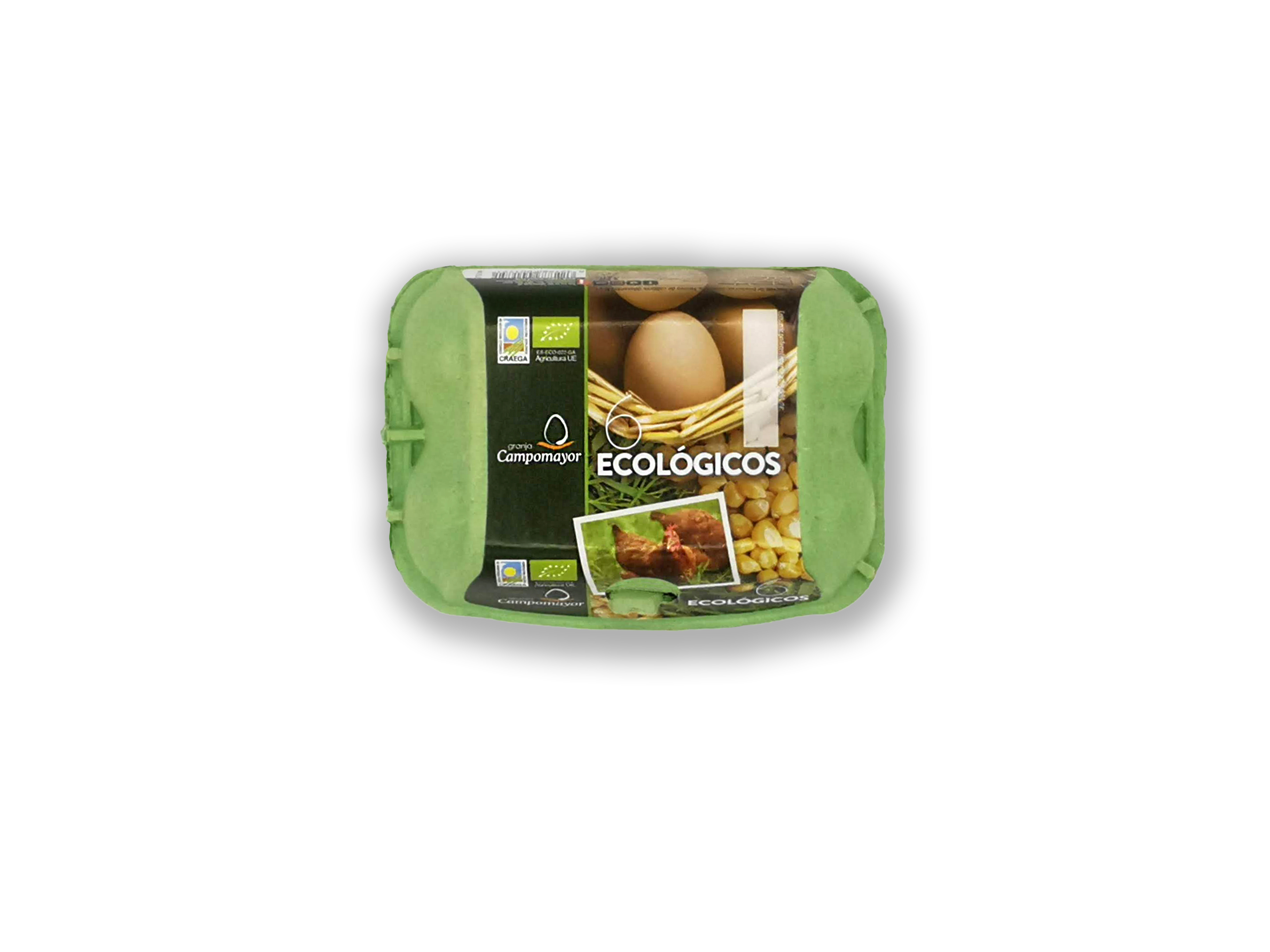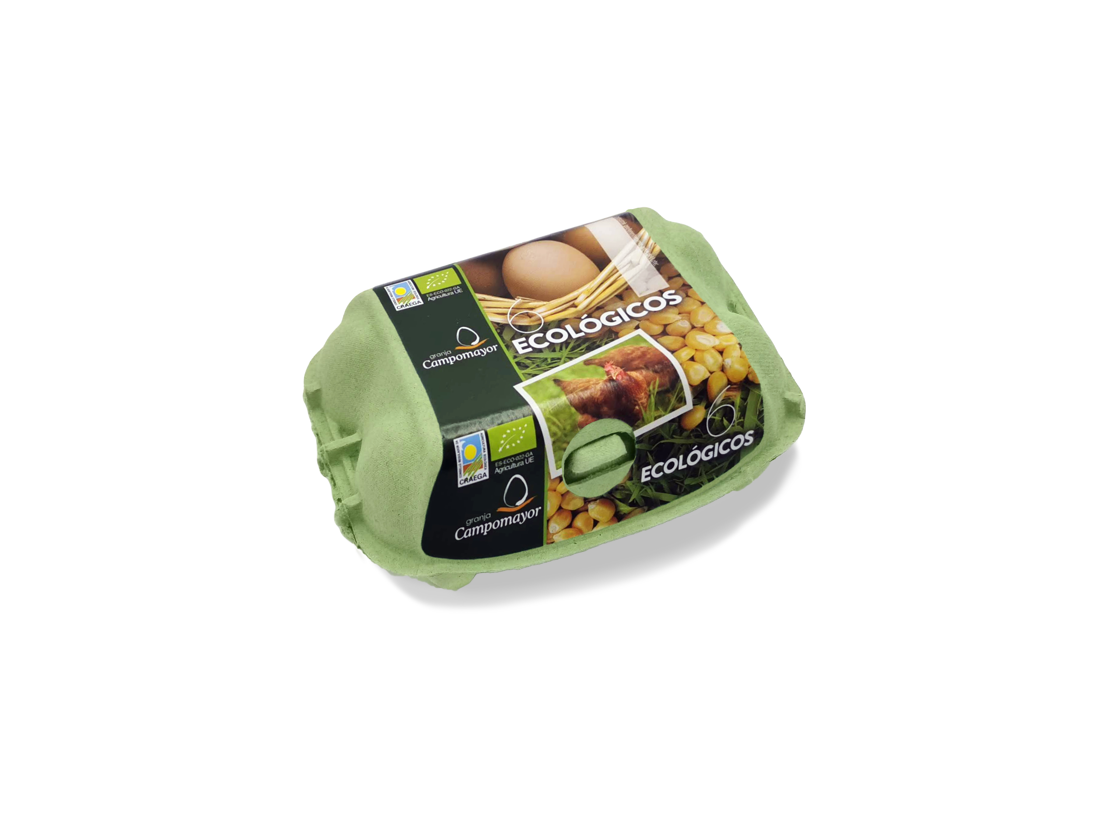 Los huevos ecológicos de Campomayor proceden de gallinas criadas en libertad. Se alimentan de cereales de agricultura ecológica, principalmente maíz, trigo y soja. Huevos como los de antes, de gran calidad y con un sabor auténtico.
