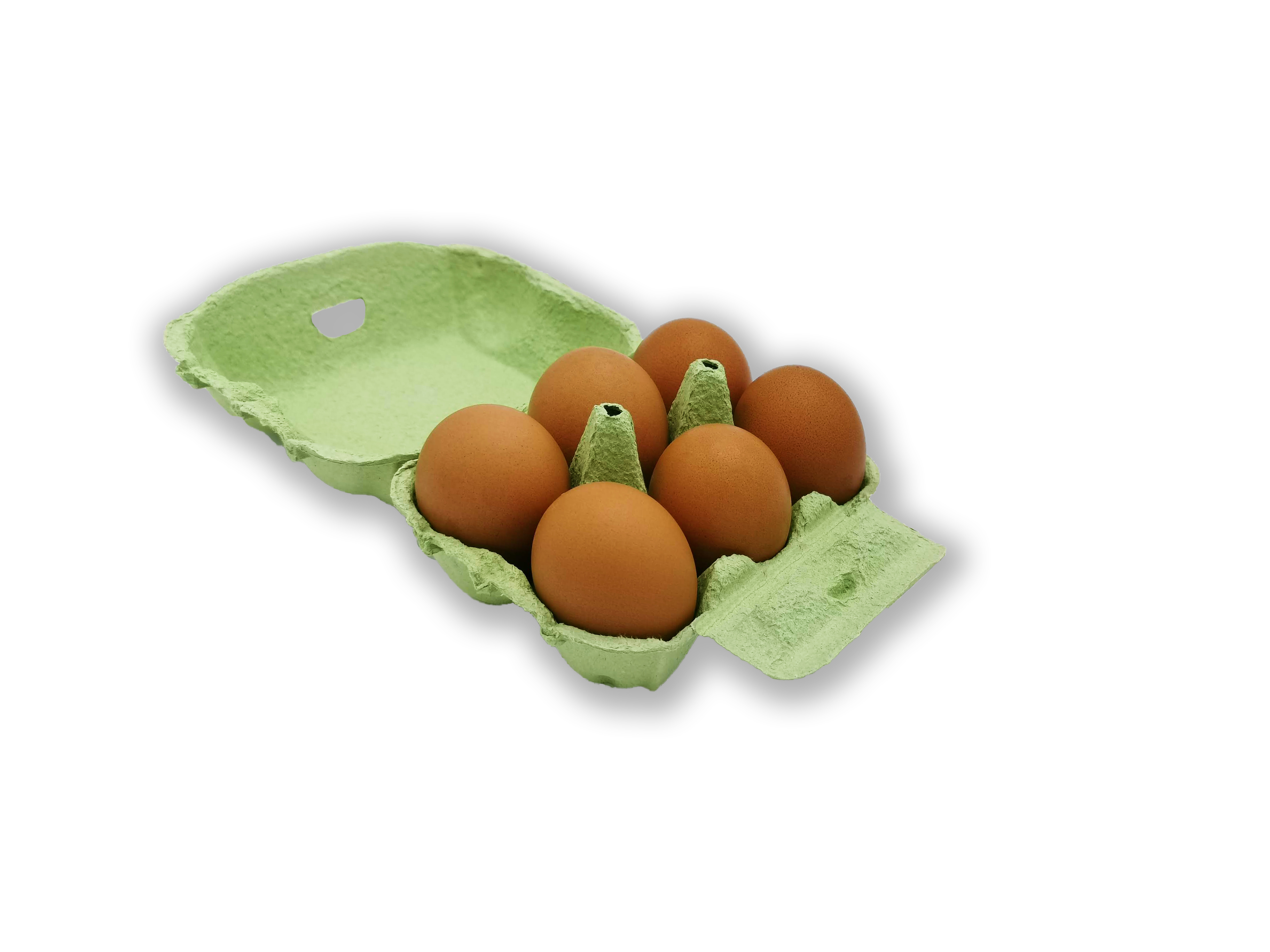Podrás encontrar el lote de producción y la fecha de consumo preferente impreso en la cáscara del huevo. El estuche está fabricado en celulosa.