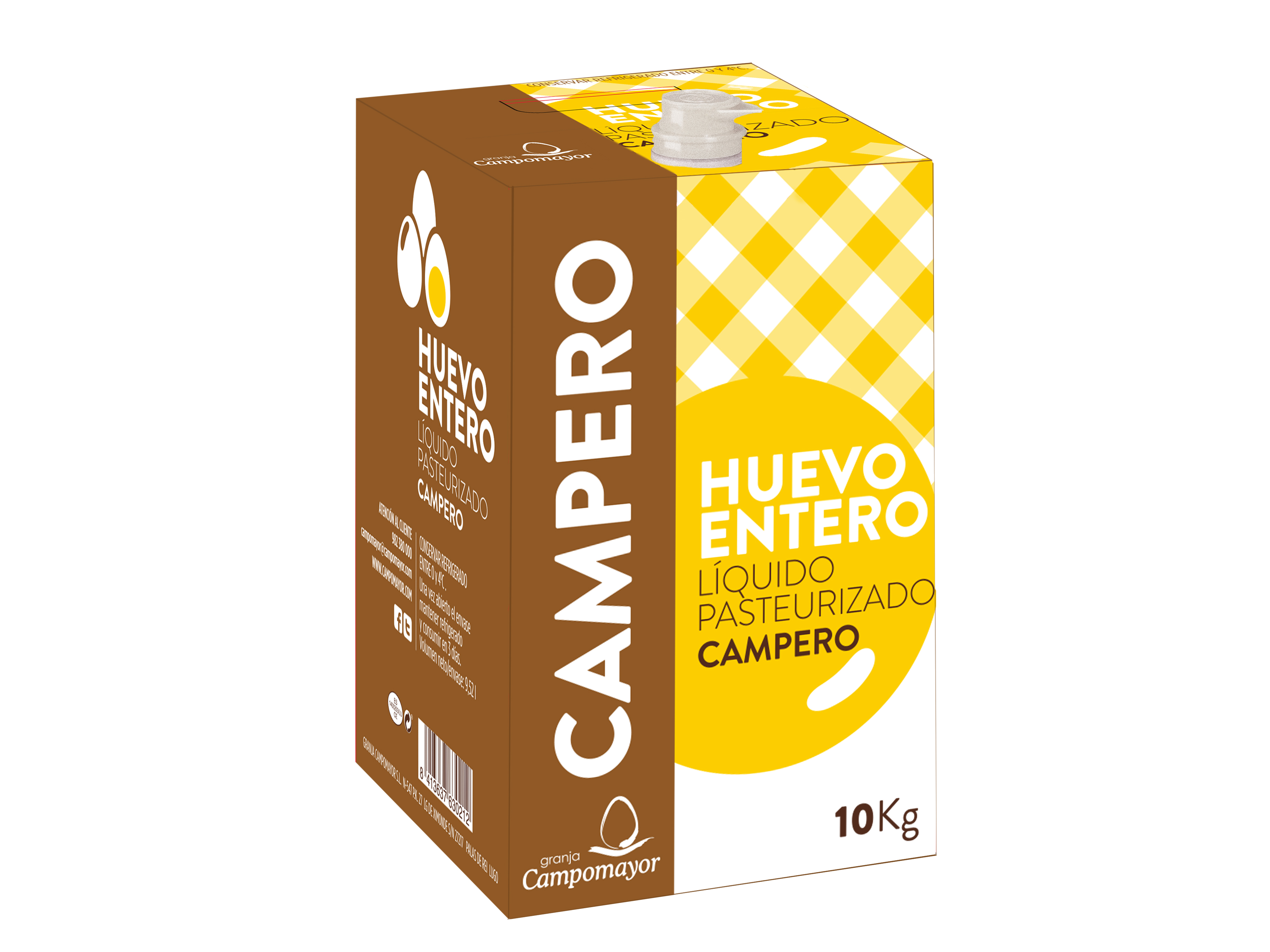 - 10kg: en Bag in Box. Equivale a +- 200 huevos. Es ideal para hostelería y restauración